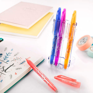 Wist je dat er ook speciale pennen en markers bestaan waarvan je de inkt weer uit kunt gummen, net zoals je bij een potlood doet? Het werkt heel simpel: schrijf, wis en herhaal! In deze webshop vind je een uitgebreid assortiment uitwisbare Pilot FriXion schrijfwaren. Deze schrijfwaren schrijven net zo fijn als een normale pen, maar dan met speciale inkt die je uit kunt gummen. Onmisbaar om flexibel te kunnen plannen!