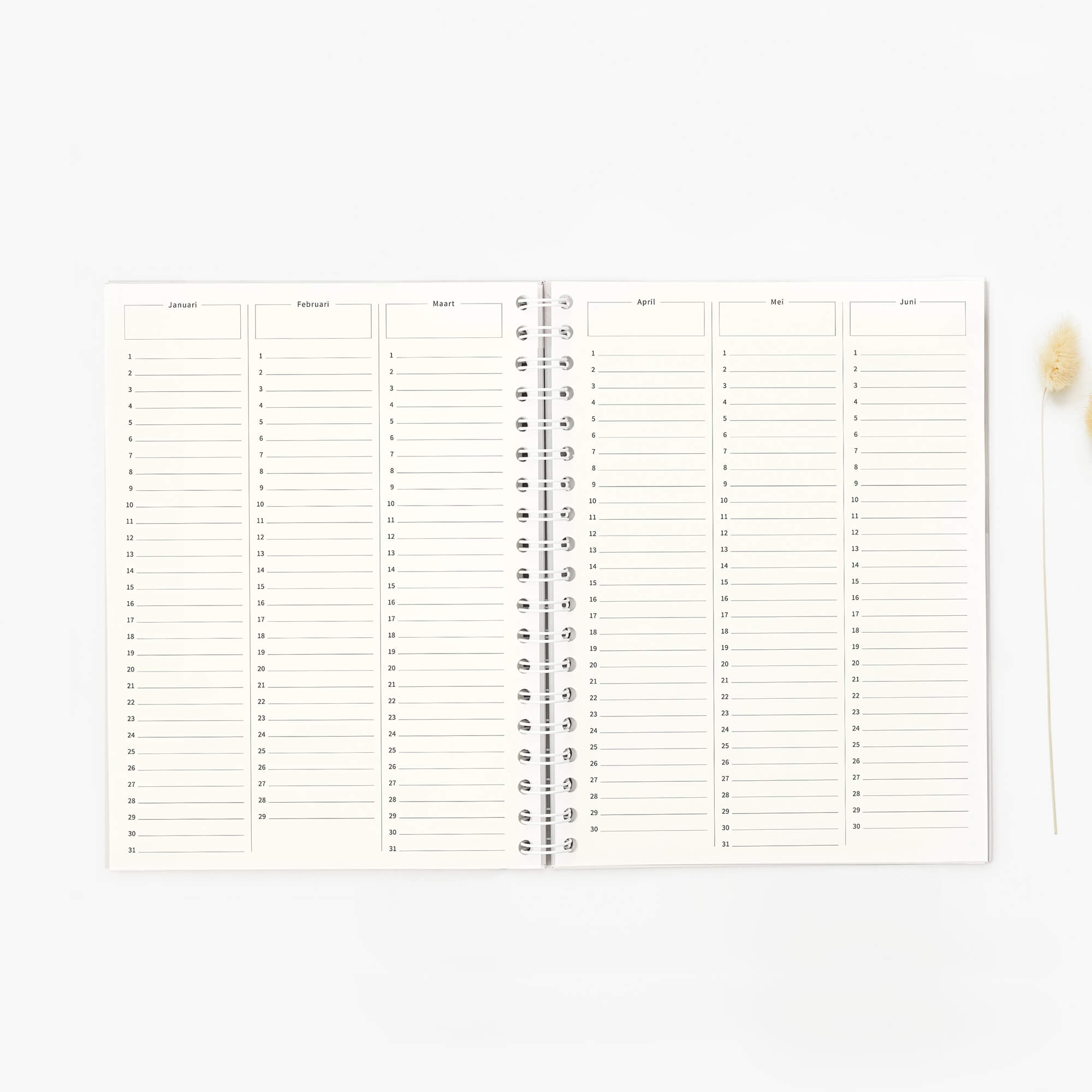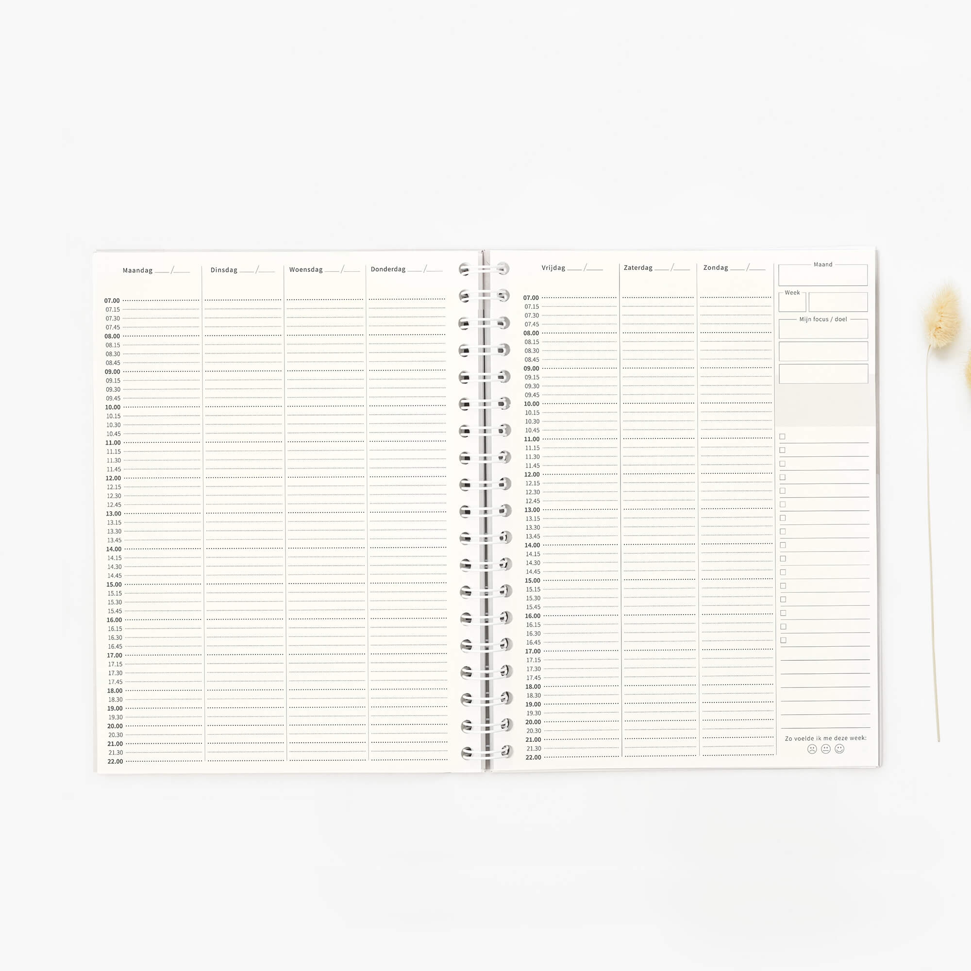 ➜ Wil je dit planboek liever in een maatje groter? Bekijk dan hier het A4 planboek (verkrijgbaar in verschillende omslagen).