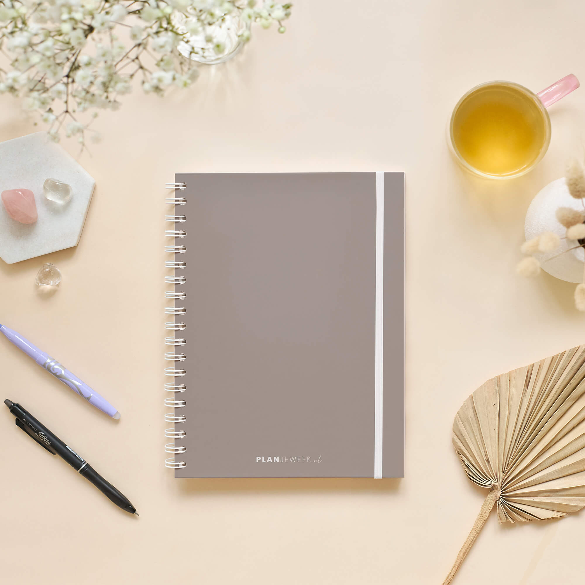 Prikkelarme weekplanner A5+ planboek neutraal Taupe / werkboek met ringband wire-o - datumloos