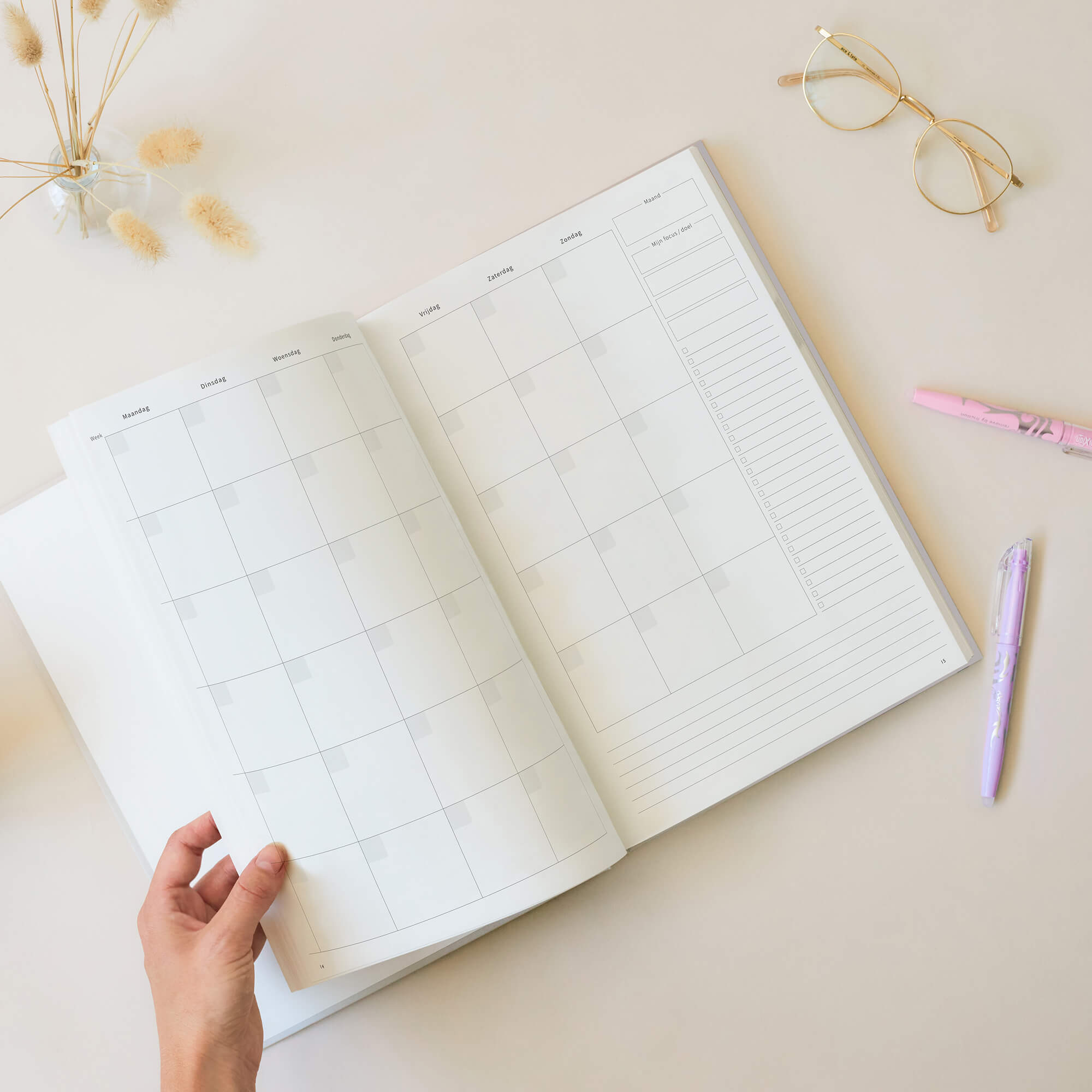 Met deze prikkelarme alles-in-één planner kun je een heel jaar prikkelarm plannen. Door het large A4 formaat is deze planner ideaal als je op zoek bent naar een grote, ruime agenda. Deze planner blijft dankzij de binding en stevige, maar iets buigzame omslag perfect openliggen. Gebruik deze planner alleen op de momenten die jij wilt omdat er geen voorgedrukte data in staan. Je kunt daardoor ook af en toe even niet plannen als je dat wilt én direct beginnen zodra de planner in je brievenbus valt.. ideaal!