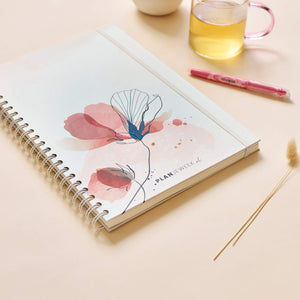 De planboeken met ringband / wire-o zijn perfect als je simpel en snel van start wilt. Het A4 planboek is in drie verschillende voorkantjes verkrijgbaar: Bloesem, Klaproos en Lotus.