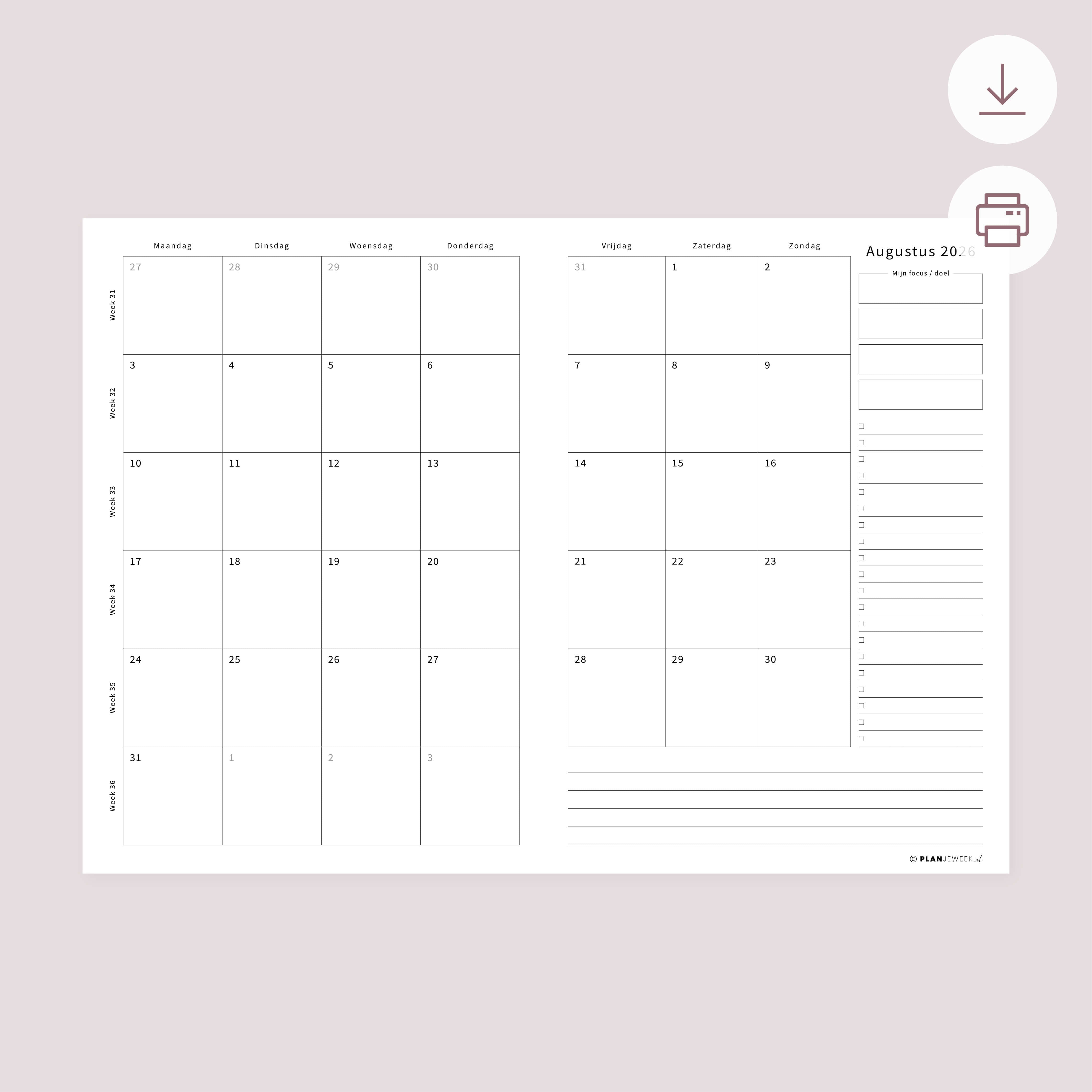 Printable - Maandplanner Augustus 2026
