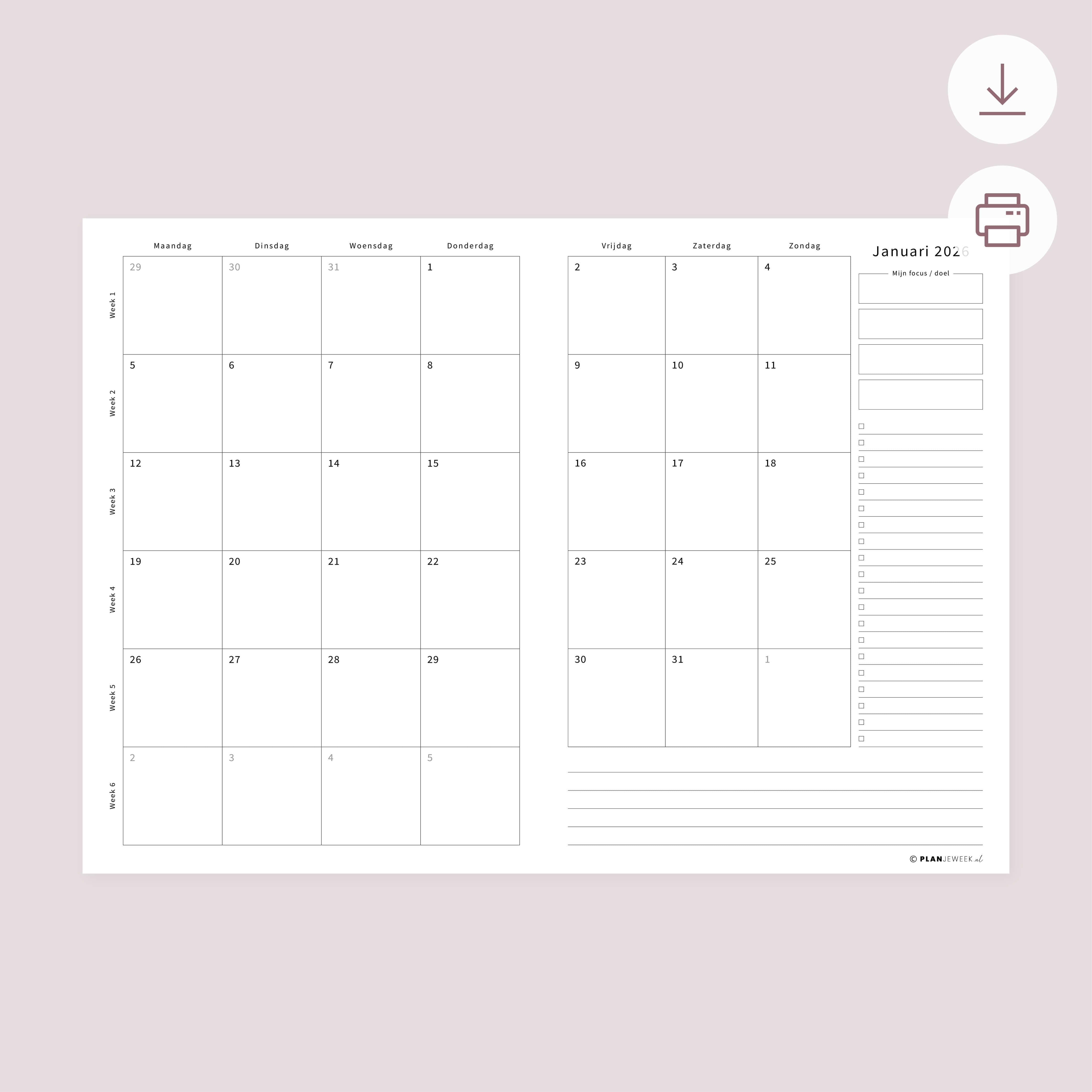 Printable - Maandplanner Januari 2026